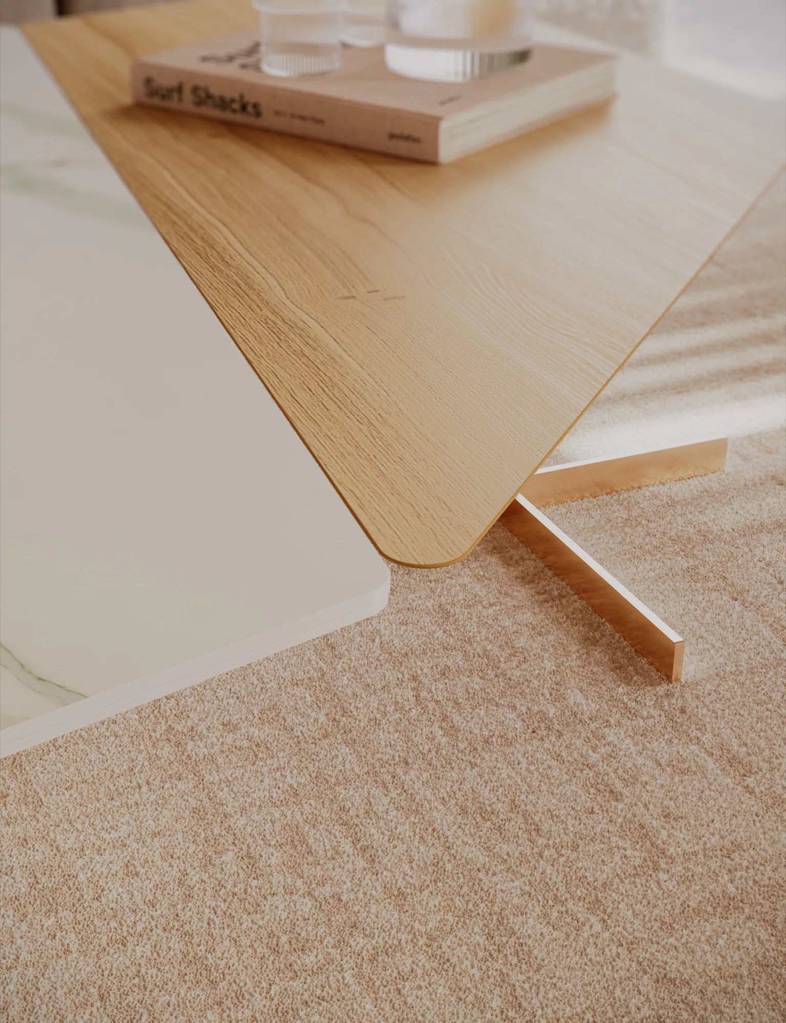 Disponible avec un plateau en bois plaqué (noyer, chêne naturel, etc.) ou en SuperMarmo (effet marbre), et une structure en métal laqué dans plusieurs finitions. Idéale pour les salons modernes, elle apporte une touche graphique et raffinée à votre intérieur.