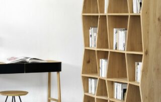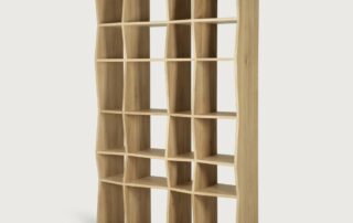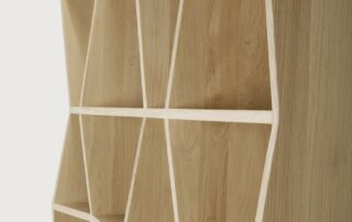 Conçu par Alain van Havre, le jeu répétitif de lignes et d'ombres de l'étagère Z lui confère un aspect unique et met pleinement en valeur le caractère du bois naturel. Existe en 2 dimensions.