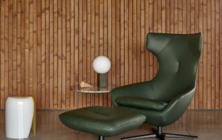 Le fauteuil pivotant Caruzzo est une véritable sculpture élancée, alliant élégance visuelle et détente. Son haut dossier offre un confort soutenu et une grande intimité. Un modèle haut de gamme, conçu avec soin pour le design et l'ergonomie.