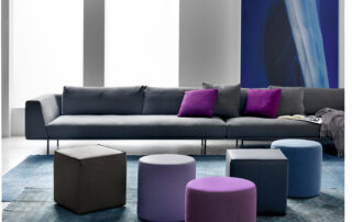 - Pouf rembourré et revêtu en Cuir Éco Premium, tissu Nordic ou Pure Virgin Wool.