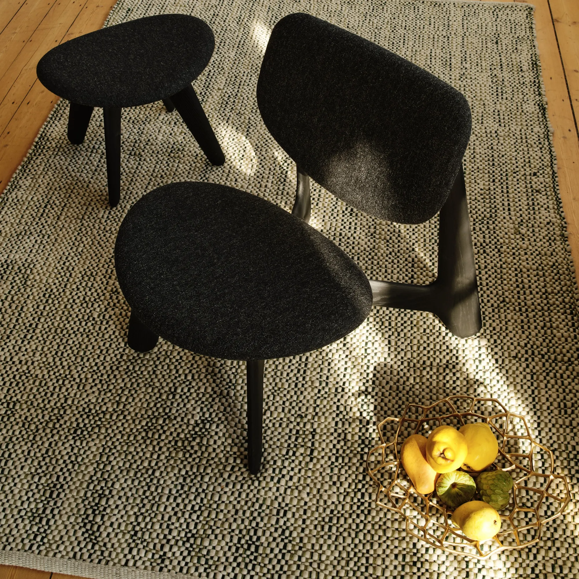 Son piètement, en chêne ou en frêne, provient de sources locales, et l’ensemble est pensé pour s’intégrer aussi bien dans des intérieurs privés que dans des espaces professionnels.