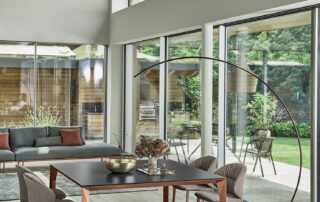 Table extensible, structure et pieds en métal laqué, Plateau en Verre, Verre Velvet anti-rayure, SuperCeramique et SuperMarbree.