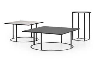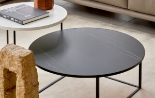 La combinaison d’angles droits et de cercles crée des illusions d’optique dans les tables Prismo, les rendant visuellement captivantes. Leur équilibre entre la structure élégante et le plateau en céramique ou en verre offre un design intemporel, parfait pour des intérieurs soigneusement aménagés.