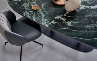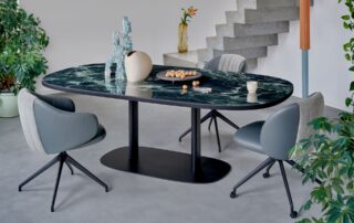 Dans la lignée de la famille de tables Toveri de Leolux, le Studio Truly a créé une table de salle à manger luxueuse. Elle se distingue par un jeu de formes douces et de matériaux durs, ainsi que par ses ombres et ses courbes.